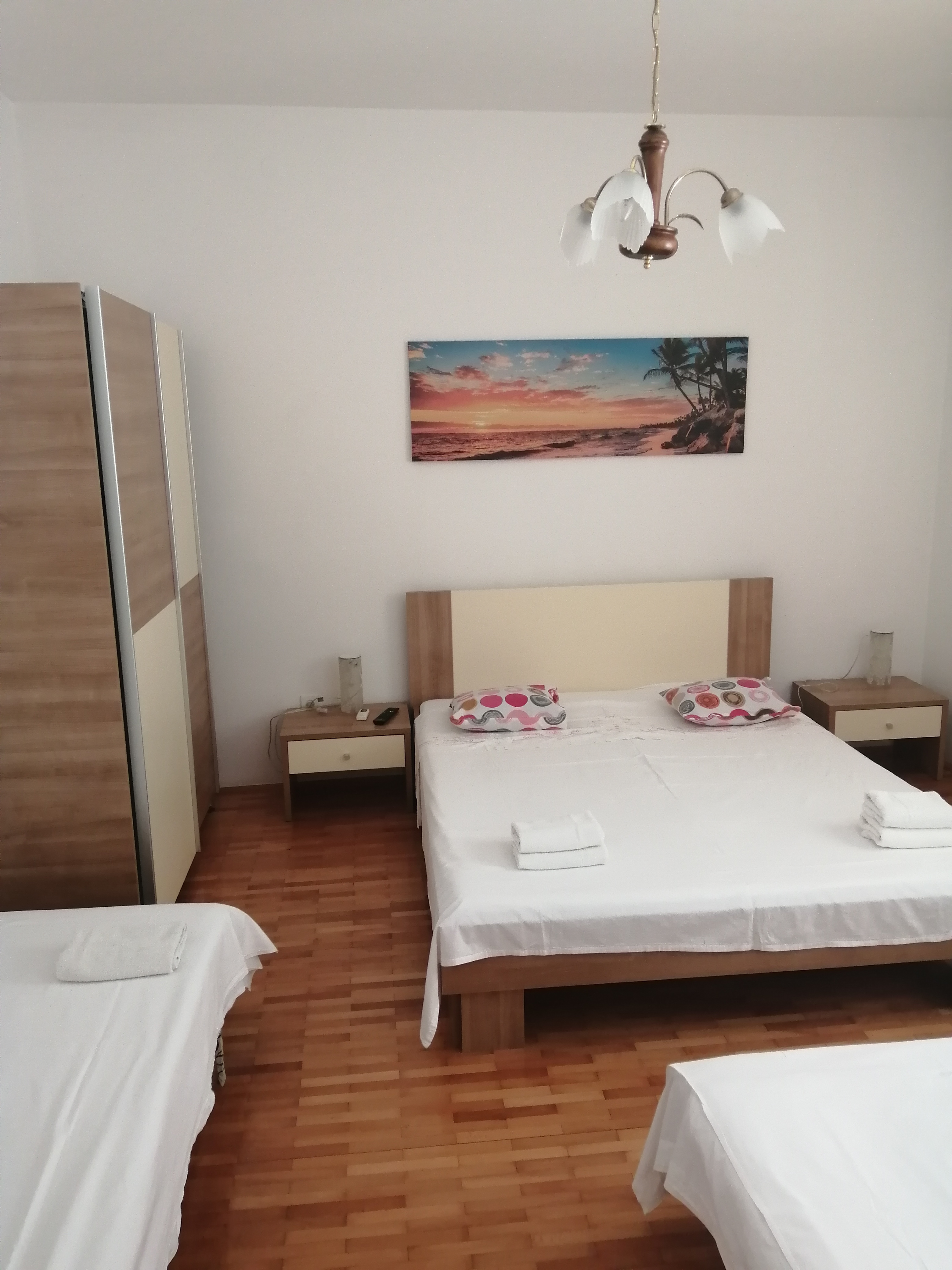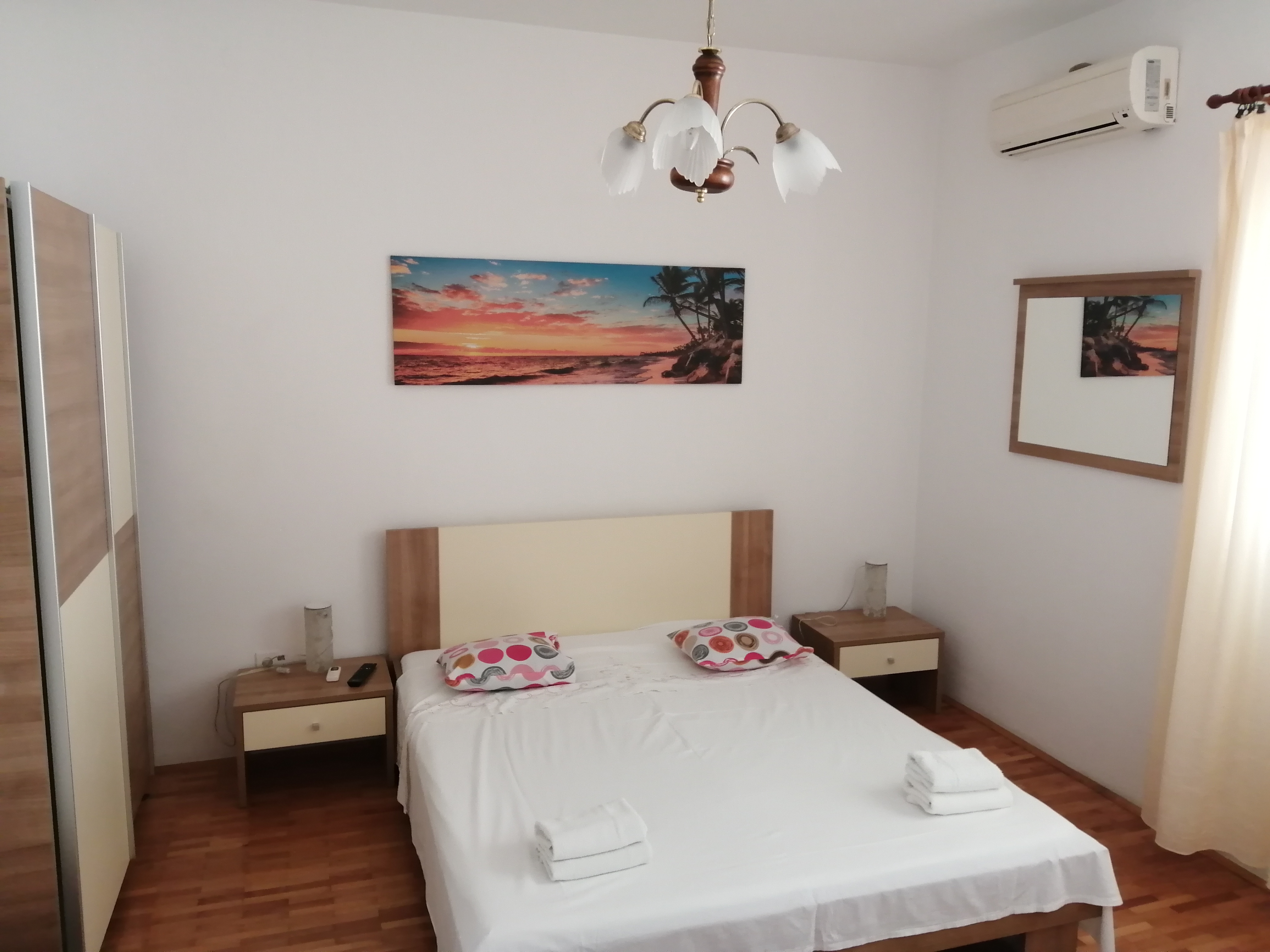 Apartament 5 znajduje się na parterze z tarasem i morza więcej. Mieszkanie znajduje się podwójne łóżko z dwoma dostawkami dla dzieci i przeznaczona jest na cztery rodziny. Oprócz budynku ogród z grillem i taras, gdzie jest to możliwe na wakacje do późnej nocy, dla wielu ludzi. Zważywszy, że dom położony jest wzdłuż wybrzeża, do plaży tylko przejść podziemnych do morza, tak że dzieci mogą swobodnie sam w mieszkaniu more.Uz idzie na parking w garażu, a także możliwość podłączenia się do łodzi. Wi fi, sat tv, parking, klimatizace, ležaki na plaž u ceni zawarte w ceni.